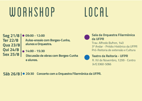 Aulas-ensaio com Borges-Cunha, alunos e Orquestra.